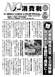 ノー消費税9月号が発行されました。1面には政府が財界とアメリカの意向をうけた東日本復興方針を決定したことや、消費税10%増を決定したことを受けて、なくす会総会の役割が重要になっていること。2~3面は税経新人会全国協議会理事長・清家裕さんの“「税と社会保障一体改革」を斬る”とその本質に迫るお話です。4~5面は各地の活動記事「東西南北」と被災地からの報告で、被災者に重くのしかかる消費税を告発。6面は鳥取藩の元文一揆の話。7面は家計簿を58年間つけてきた横浜の中田さんの寄稿。8ページはビラページです。やさしく読めてためになる「ノー消費税」を是非ご購読下さい。