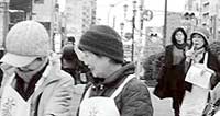 私は自分の住んでいる石橋町の校区の小学校で23年間とじこめられたように"教師をしてきました。その後、市会議員を16年勤めましたので、良きにつけ悪しきにつけ知名度は抜群です。昨年9月から3ヶ月だけでも、国会請願署名を1030筆、なくす会の会員を941人拡大しました。全国の会のパンフレットは240冊普及しました。今も九つの丁目を全戸訪問的に回って会員拡大をしています。 今度の総選挙は、消費税の増税を許してしまうか、それとも「消費税ノー、増税反対、食料品非課税を」を勝ち取るかが、最大の争点だと私は認識しています。この声をいかに草の根にひろげていくか…。 昨年暮れからは、総選挙公示まで街角でスポット演説をやろうと、始めました。地元の石橋駅前商店街は通行人が多く、買い物客も行き交いますので、5、6分の短い演説をしています。これまで70回ほどやりました。 「消費税増税にきっぱり反対する政党・議員を国会に送りましょう!」と、のぼりつき自転車の脇に立って訴えるのです。 公示になったら、電話で「なくす会」の会員さんに呼びかけをします。入会署名のときにみなさん電話番号もきちんと書いて下さっていますので、「先日お訪ねした丸岡です」といえばすぐわかってもらえます。 こうして私は、@訪問 A街角スポット B電話での支持拡大を「三連打」と銘打って、増税勢力ノックアウト活動をしています。 ●継続は力なりをモットーに20年やってきました 山口県下関の会 藤野 公男さん 毎月24日、悪天候などで、たまに休むこともありましたが、つづけることを「信念」にしています。 下関市は、山口県の中で最も人口の多い市で、28万人余が暮らしています。本州最西端にあり、九州への入り口です。下関でも1050人の派遣切りがあり、不況の影響は深刻です。 宣伝はなくす会独自ではなく、各界連と共同で、7、8人が出ます。民商の人たちを中心に、元学校の先生をしていた会員が訴えのマイクを握ります。 宣伝は、市内一の繁華街のシーモールという大きなショッピングセンターの前で行うことが多いのですが、その時々に場所を変え、スーパーの前など、人が集まるところに出ます。 消費税ノー、消費税増税反対の運動をしているひとたちがいるということはかなり知られています。まさに「継続こそ力」を実感します。 総選挙で「消費税増税反対」をきっぱり掲げる政党・候補者が国会に出られるように対話を強めていこうと思います。 4月1日宣伝は、民商を中心に大きく打って出ようという計画があり、なくす会も協力して世論を高める役割を果たします。 ●襲いかかる不況の嵐のもとで 愛知 がんばる草の根の会 「2兆円もの給付金をバラまくなら、せめて食べるものに消費税をかけないようにしてほしい…」わずかばかりの所持金もほとんど使い果たして、やっと名古屋の派遣村にたどり着いた人びとが、消費税増税反対の署名をして残して言った言葉です。 愛知県は工業出荷額日本一といわれ、トヨタをはじめとする大企業の城下町です。 「元気な愛知」「元気な名古屋」とさかんに宣伝されてきました。しかし、急激な不況のもとで派遣切りなどの政治災害が襲いかかる前から、実は愛知はネットカフェ難民日本一、自殺率も全国上位という状況が出ていました。 道路も港湾も空港も名古屋駅前の超高層ビルも、トヨタなど大企業のために巨額の税金が注ぎ込まれて、造られて来ました。 元気なのは大企業だけで、低賃金・長時間労働・不安定雇用と下請けいじめで、県民の暮らしや営業は大変な状況でした。 そこへ今度の派遣切りや期間工切りが襲いかかり、愛知は2万人(1月23日現在)を越える非正規雇用の雇い止めによって、派遣村には職と住まいを失った労働者が殺到し、中小企業・業者は仕事の減少や資金繰りに苦しむなど県民の暮らしは深刻な現状です。 ●●学習して力をつけ運動を●● 消費税をなくす愛知の会は、2月14日に学習・交流会を開き、増税勢力が事実上の増税を今国会で決めようとしている今、急いで草の根からの運動を強めようと意思を固め合いました。 ●●地域に根ざす会●● 名古屋の派遣村の近くで活動している中村区の豊臣の会の仲間たちは、相談に来られた労働者たちに、おにぎりと味噌汁をつくってたべてもらい身も心も温めてと、「おにぎりの会」に入って連日奮闘しています。こうした忙しい毎日のなかでもなくす会の会員拡大に心がけ、毎月宣伝・対話・署名・入会行動を欠かしません。
