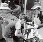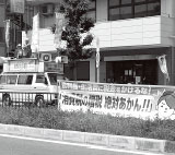 宣伝はなくす草の根の会からと、各界連や民主団体、共産党の議員さんなどの協力を受け、毎日朝から夕方まで1日4〜6カ所で3日間で14カ所で行い、移動には流しテープで宣伝しました。 各地で「社会保障のため増税は仕方ないのでは?」「鳩山は亡国の首相だ」「あの人はうそつきだ。もう信用ならん」「わしは自民党だが消費税には反対だ」などなど、怒りの声が寄せられました。行動参加は延べ136人、集まった署名は315筆でした。 ●お菓子屋さんが入会署名集め 京都の会