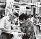 7月26日、各界連とともに土砂降りのなか、JR福島駅前で「参議院選挙で菅内閣の10%にノーの審判がくだされました。しかし、民主・自民両党はあきらめていません。増税法案を作らせないために署名を」と訴えました。中年の男性は「俺も怒っている。増税しないように頑張ってくれ、頼むよ」と署名。40分間で15人が署 名をしてくれました。 ●商店を一軒一軒対話 大分の会
