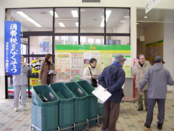 いわての北上の会は、「4・1消費税還元デー」が行われている生協のお店前で宣伝。1日〜2日の2日間で、請願署名が227人から集まりました。 |