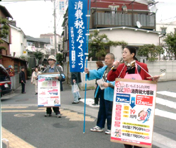 ![]() 消費税導入17年目の4月1日。消費税をなくす全国の会は、昨年の秋から取り組んできた「草の根ウエーブ」の最大の山場として、「4・1怒りの行動」を実施。小泉内閣が2007年からの消費税の大増税をたくらむ中、今年は、北海道から沖縄まで列島を縦断して、例年以上に大きく取り組まれました。 |