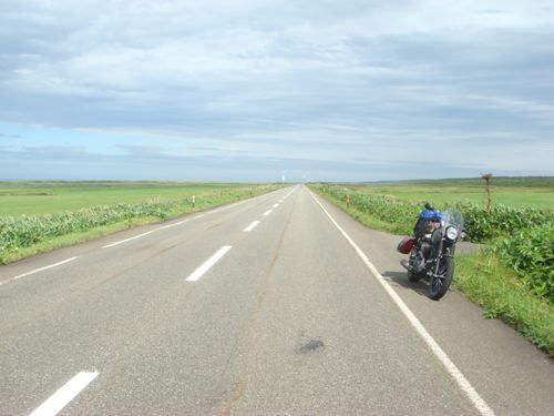 稚内から手塩へ抜ける道道106号別名オロロンラインを行く。ここは西のエサヌカ線と言われ、真っ直ぐな道に電柱もガードレールもない快走路だ。