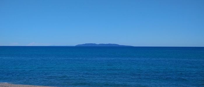 天気は最高に良いが猛烈な熱風の横風が日本海からオレとバイクに吹き付ける。村上市まではもうすぐだ、沖合には粟島が綺麗に見え、その向こう