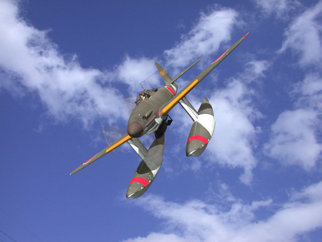 「晴嵐」はフロート付きの水上機にも拘らず急降下爆撃も可能な優れモノで、敵の迎撃戦闘機と遭遇した緊急時にはフロートを機体から切り離し、グラ