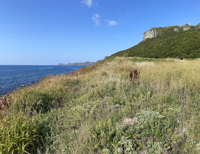 快晴の日本海側に進入して綺麗な海を眺めながら、岩内から神恵内へと走り神威岬まではもうすぐだ。