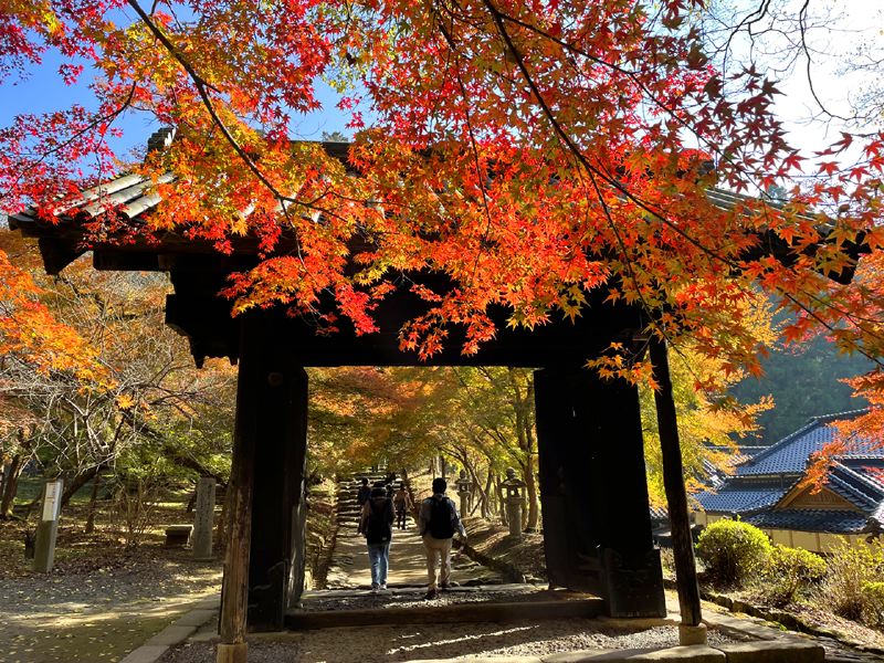 黒門の紅葉はまだ少し遅いのか、真っ赤に色付いたモミジとまだ青いモミジとが重なって綺麗だ。(オレはこれくらいが好きだな…^^)