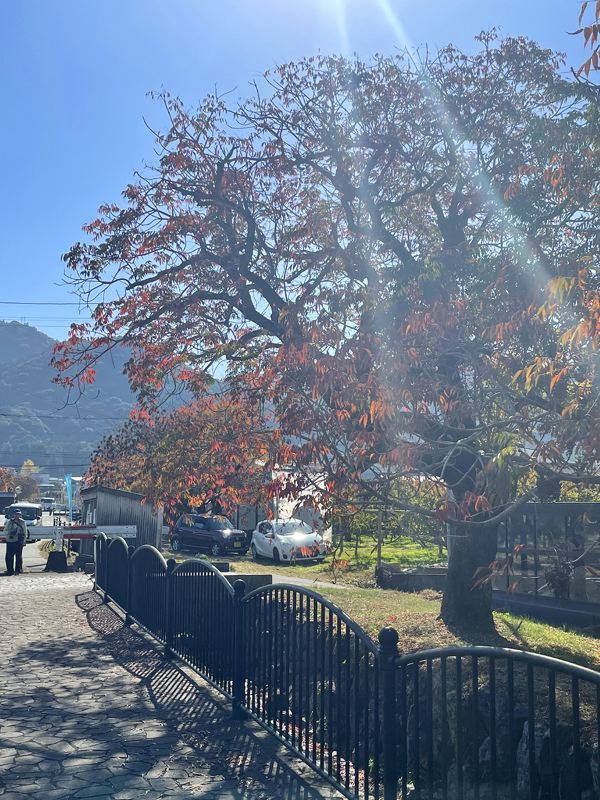 此処の紅葉も少し遅いのかハゼの葉はまだ真っ赤には色付いていないが、約2kmにわたるハゼ並木は綺麗で壮観である。^^
