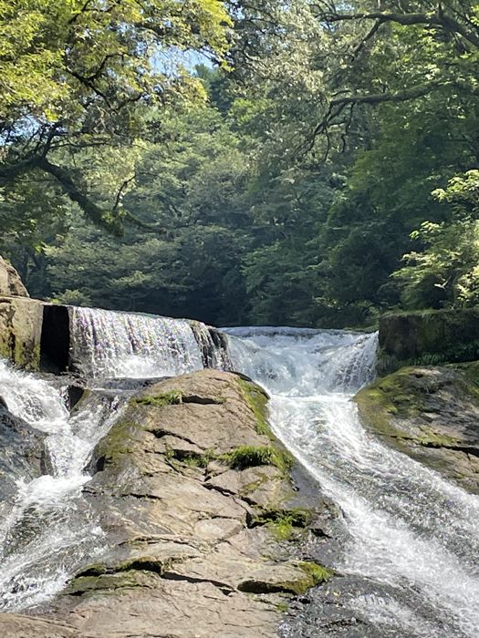 時々渓谷を川岸まで下りて水辺に立ち、綺麗な急流を眺める。涼しい…^^。
