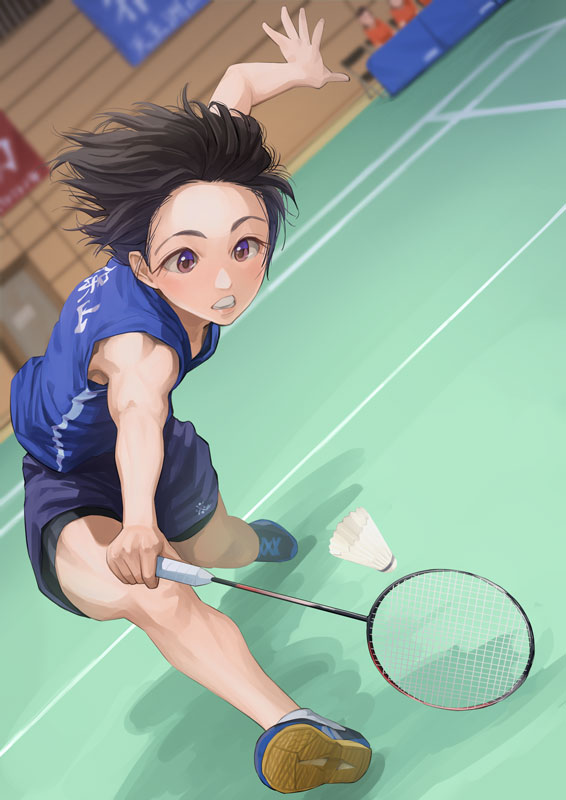 バドミントン選手のレシーブシーン。 飛び込み! 瞬発力!